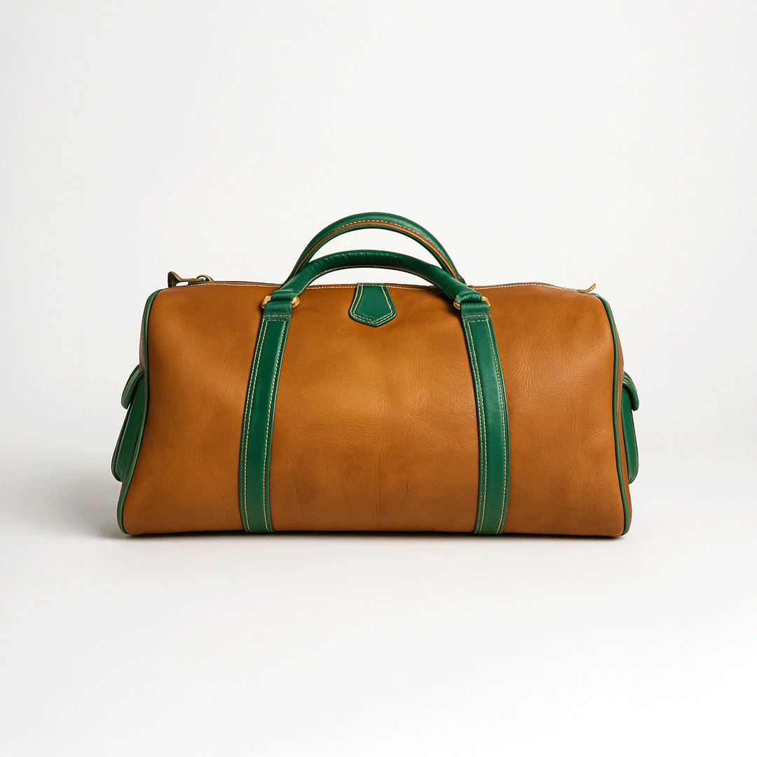 Brown Moroccan Leather Handbag – Handcrafted with Green Stripes