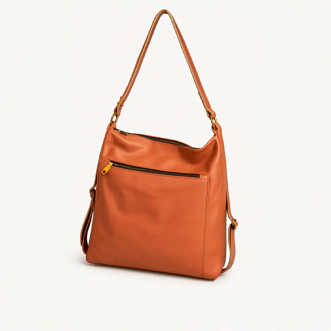This handcrafted light orange Moroccan leather backpack features a unique design, combining vibrant color with functional compartments. Made from genuine leather, it’s perfect for everyday use while adding a distinctive touch of Moroccan craftsmanship to your look.