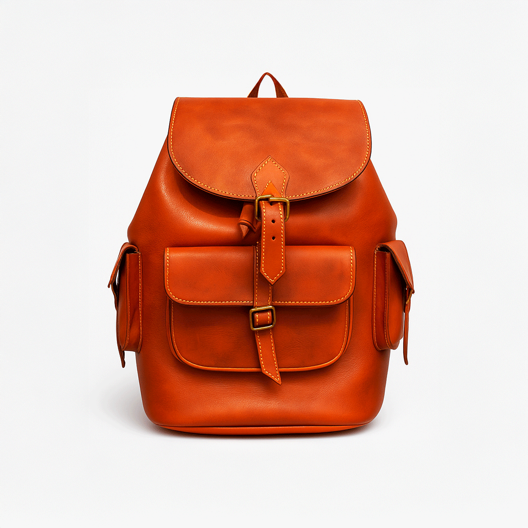 Light Orange Moroccan Leather Backpack – Handcrafted