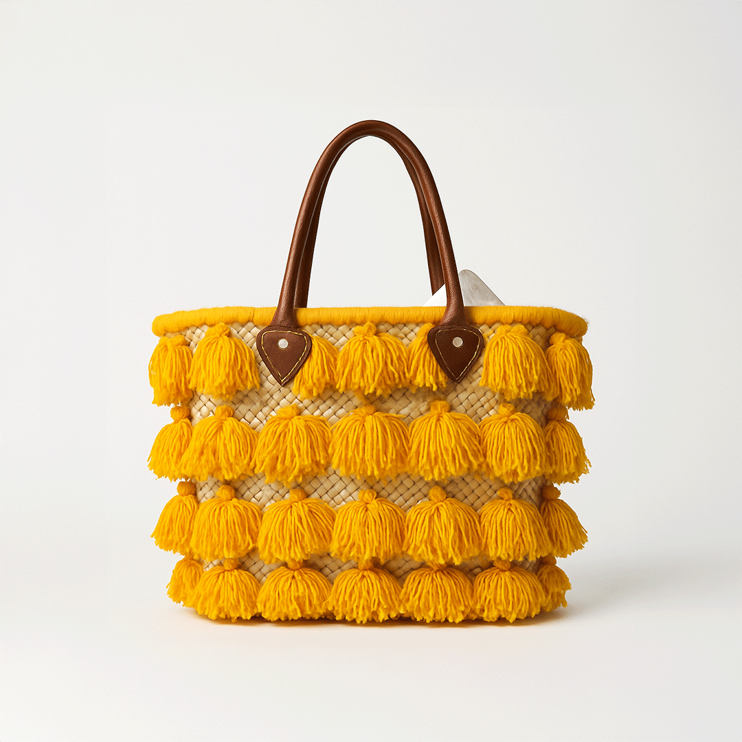 Northern Moroccan Qfifa-Style Leather Handbag – Yellow Tassels
