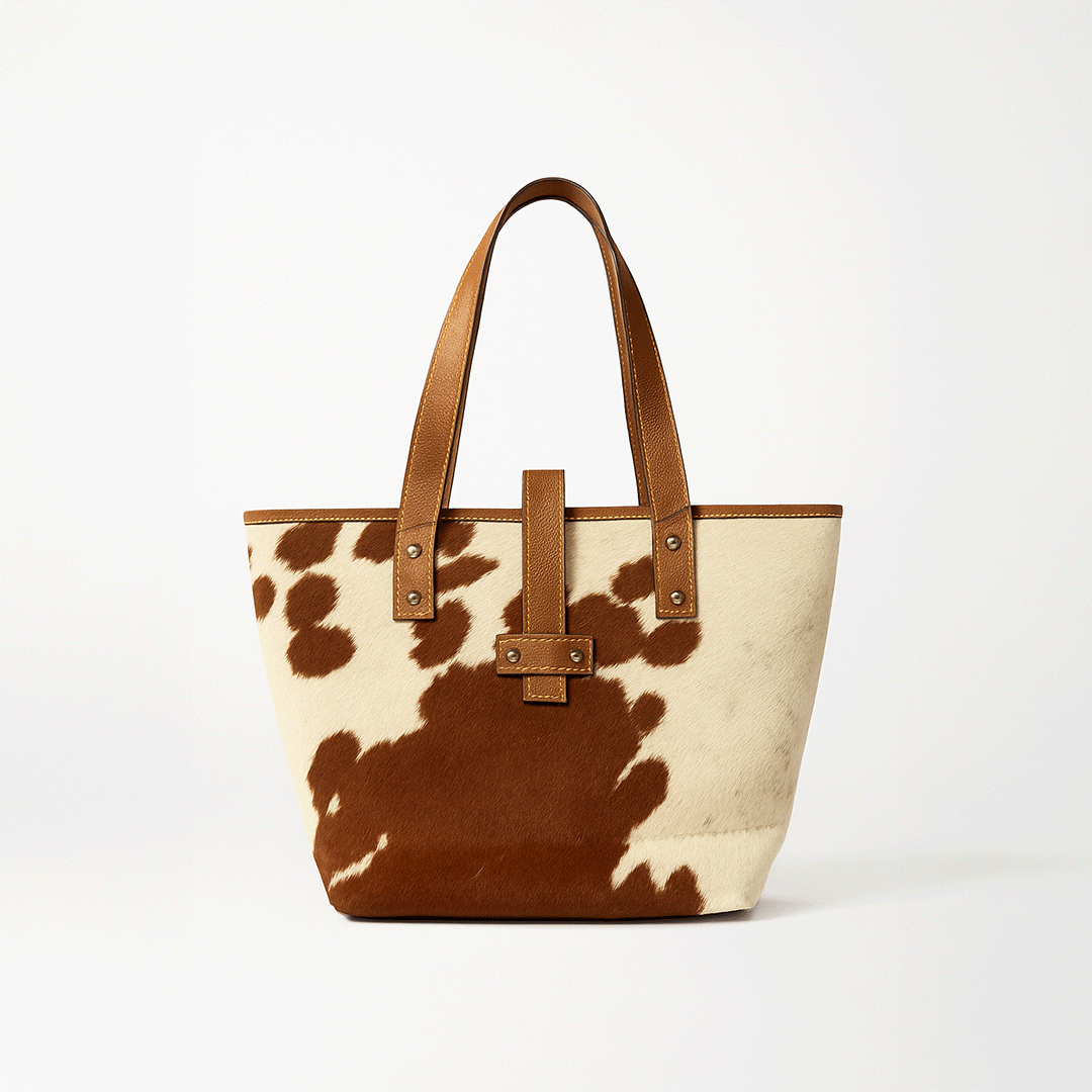 White & Dark Brown Goat Skin Moroccan Leather Handbag – Handcrafted
